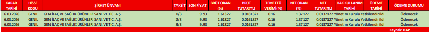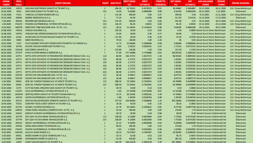 Temettü takvimi raporu yayımlandı
